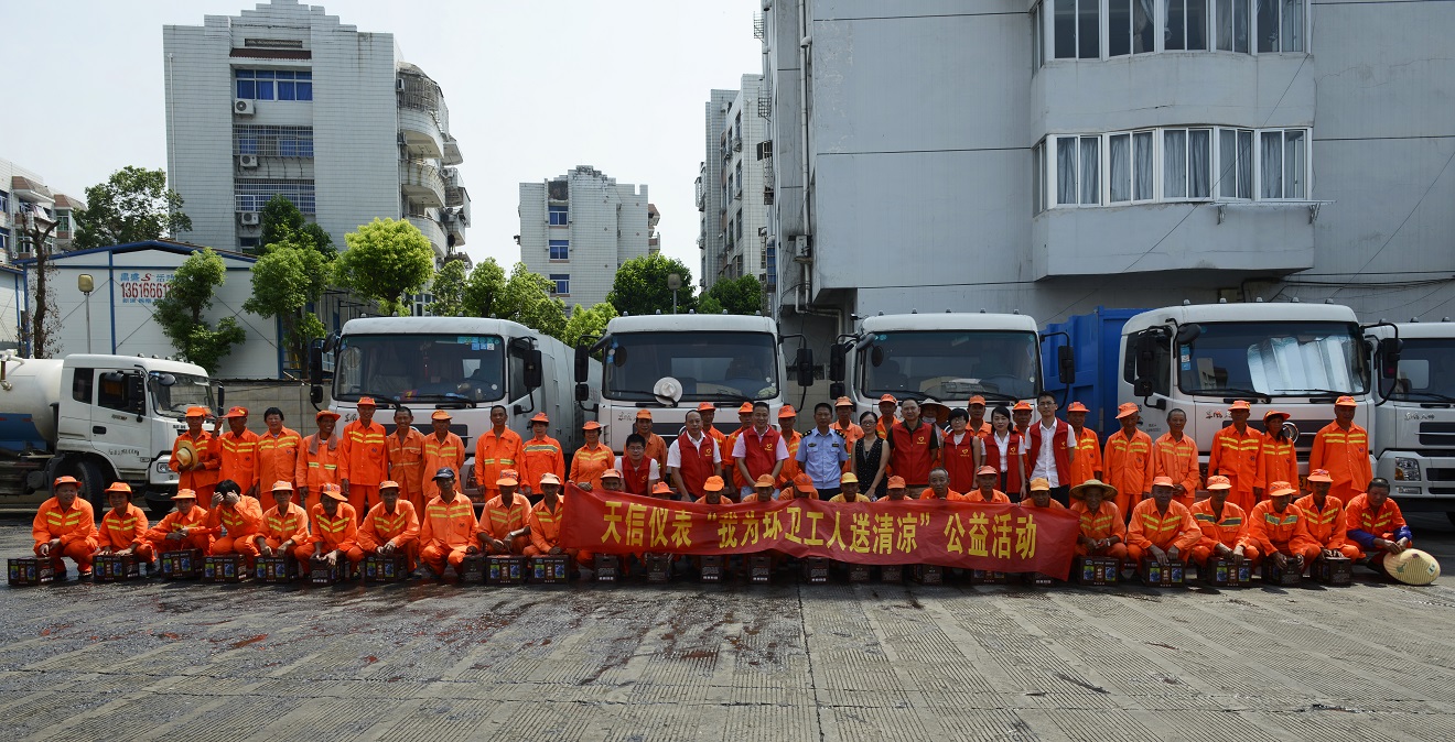 對環(huán)衛(wèi)工人的關(guān)愛,體現(xiàn)了一個城市的文明程度,這不是表現(xiàn)在口頭上,而是體現(xiàn)在具體的行動中。為了號召廣大市民講文明、樹新風,共同參與城市環(huán)境衛(wèi)生建設(shè),同時緩解、分擔環(huán)衛(wèi)工人的工作壓力,天信儀表集團有限公司黨工團婦于今年夏季再一次發(fā)起;我為環(huán)衛(wèi)工人送清涼;的微公益活動。