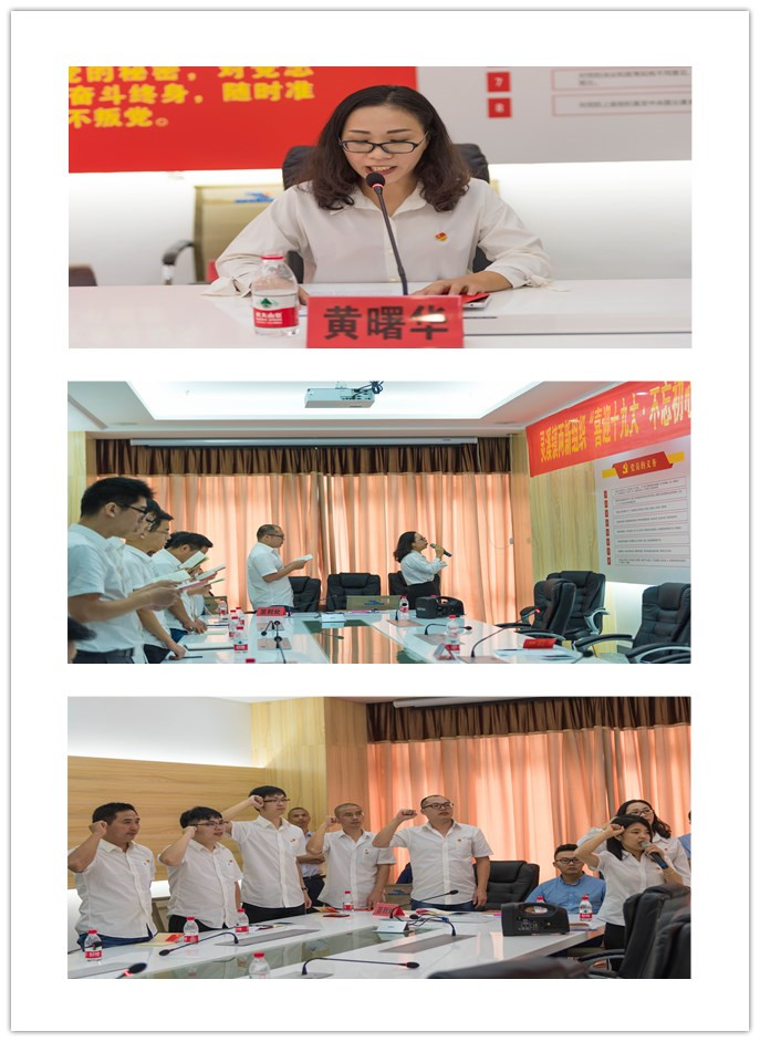 在集體觀看警示教育片、學(xué)習(xí)有關(guān)文件精神后,天信的8位黨員、入黨積極分子在黨委書記黃曙華的帶領(lǐng)下,有序按照蒼南縣主題黨日+N模式作示范教學(xué)。佩戴黨徽持黨員一本通簽到,通過支付寶或微信紅包現(xiàn)場繳納10月份黨費(fèi)、重溫入黨誓詞、集體誦讀黨員的義務(wù),在喜迎十九大、說說心里話主題討論交流環(huán)節(jié)中,大家袒露心聲,發(fā)言踴躍,有表達(dá)對國家、對黨、對企業(yè)熱愛的,有回顧總結(jié)反思自己學(xué)習(xí)工作的,有對上級和公司黨組織提出希望和要求的,預(yù)備黨員鄒邦福說,能在十九大召開之前,光榮加入中國共產(chǎn)黨,他感到無比驕傲和自豪!隨后,黨委書記黃曙華對大家的發(fā)言給予了點(diǎn)評,她充分地肯定了天信黨員在日常工作中的付出和努力,同時希望大家繼續(xù)立足崗位、發(fā)揮先鋒模范作用,以優(yōu)異的成績向黨的十九大獻(xiàn)禮!