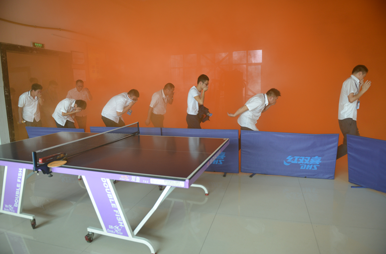 著火了,請大家馬上撤離現(xiàn)場,2016年7月6日上午10點(diǎn),天信儀表集團(tuán)二樓大型會議室出口,響起了陣陣叫聲。而此時,會議室里面,有100多名員工正在接受現(xiàn)場培訓(xùn)。很快,紅色刺鼻的煙霧繚繞淹沒了走廊和樓道,火警警報也在廠區(qū)里鳴起,情況十分危急。只見所有員工,面帶嚴(yán)肅,沒人說笑,沒人擁擠,捂著口鼻,貓著身體,快速有序地逃生撤離事實(shí)上,這并不是真的火災(zāi),而是天信儀表集團(tuán)聯(lián)合蒼南縣消防大隊(duì)開展的一次消防演練。