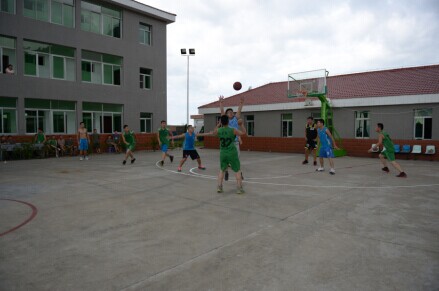 參觀后,一場軍民籃球賽隨即激烈上演。雙方球員本著“友誼第一,比賽第二”的原則,在賽場上奮力拼搏、積極進(jìn)攻、全力防守、默契配合,共同為在場觀眾奉獻(xiàn)了一場精彩的比賽,最后比分為87:83,天信隊以微弱的優(yōu)勢勝出。